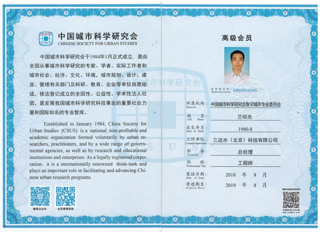 中國城市科學(xué)研究會數(shù)字城市專業(yè)委員會會員